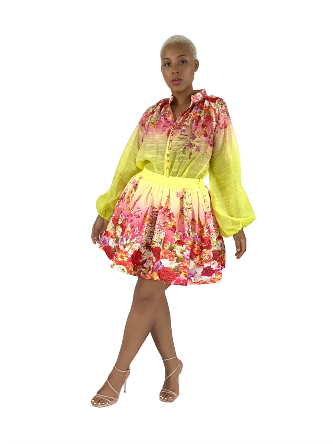 Get ready to turn heads in this playful Floral 2 piece skirt set! The bright...