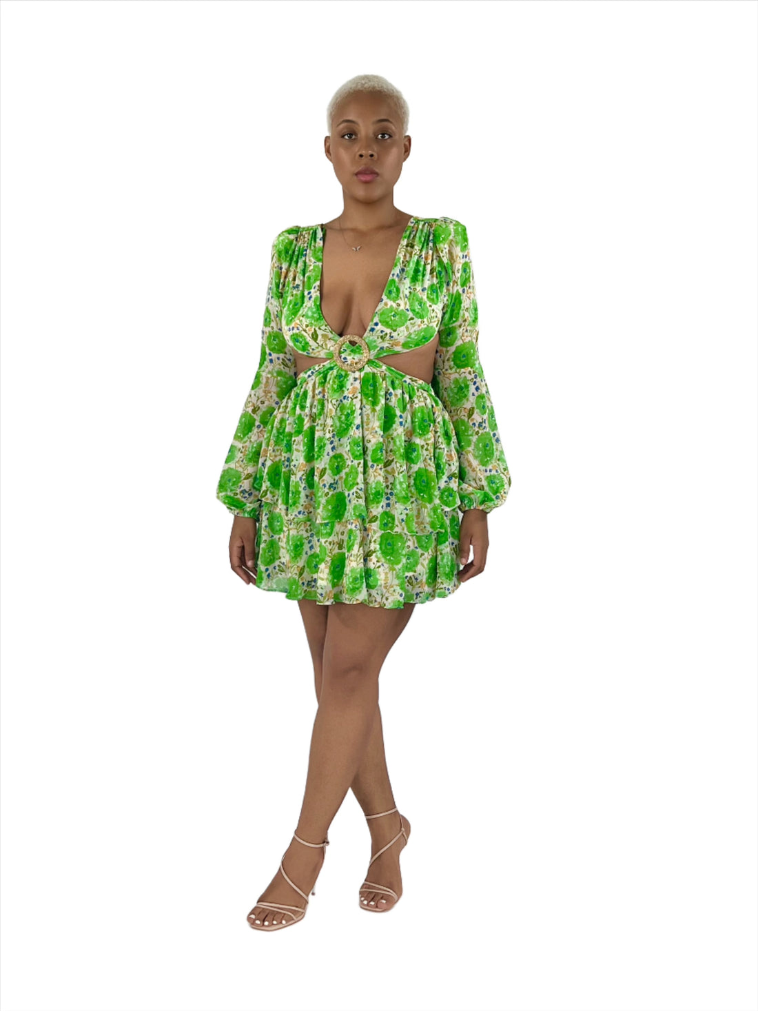 Channel all the summery vibes with this Floral Green Cut Out Mini Dress. What's not to...