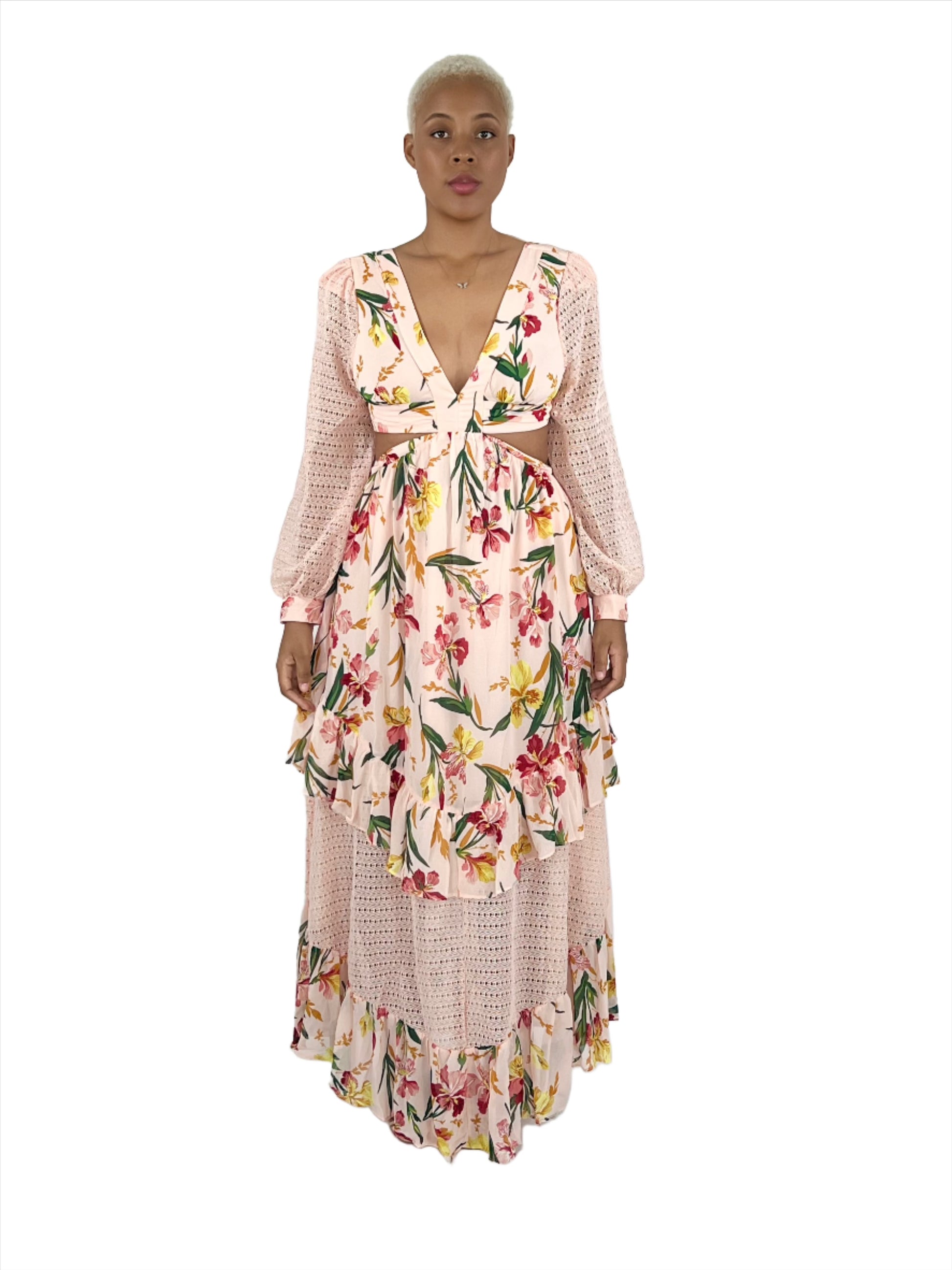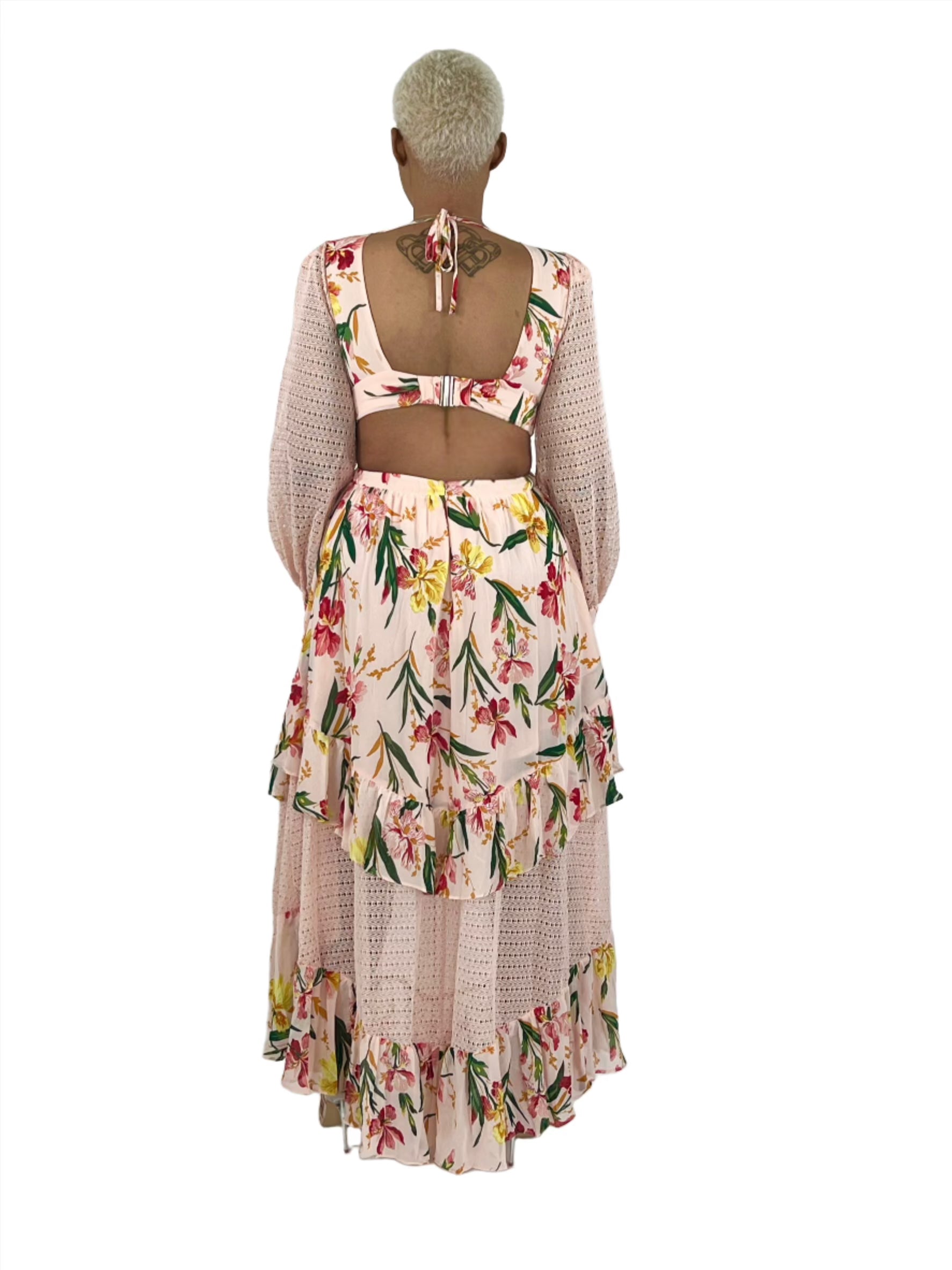 We are obsessing over all things floral right now and this maxi dress is at the top of our hit-list! Featuring a floral print with frill trims and hem and an open back design, what's not to love?